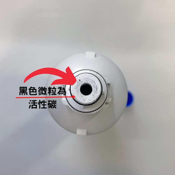 請連續沖過濾水5分鐘, 令所有活性碳粉未沖走才開始使用。