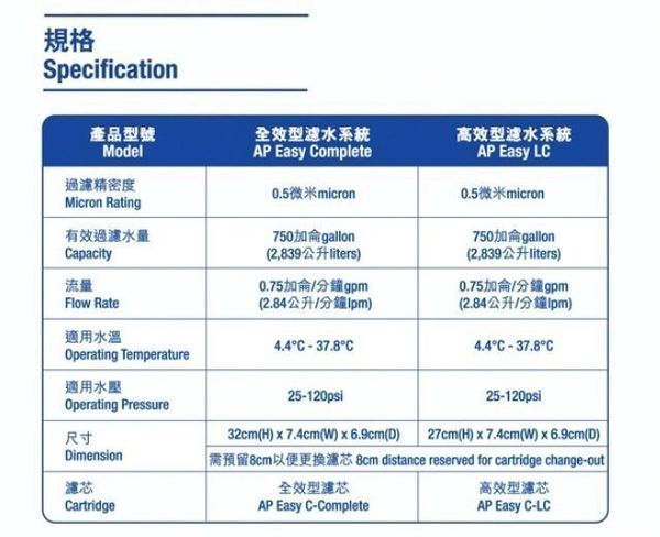 AP Easy Complete Water Filter Cartridge 全效型濾水器濾芯