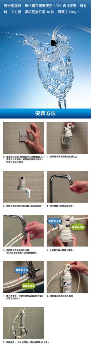 3M 高效型濾水系統 AP Easy LC (DIY 自行安裝分流器)。鋅盤面安裝,在原有水龍頭直接安裝簡單分流器,免欲于鋅盤面開孔接駁獨立的水龍頭。濾水系統通過NSF認證,有效過濾水中平均99.3%鉛粒子及離子、鐵銹、餘氯、異味、沉積物及隱孢子蟲。