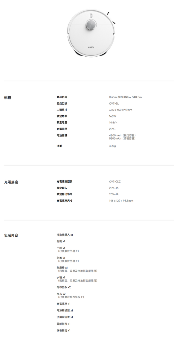 Xiaomi 掃拖機器人 S40 Pro