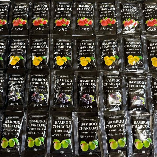 “竹炭果果凍”,以京都天滿竹炭為主麵糊製作,混合多種水果口味,綜合: