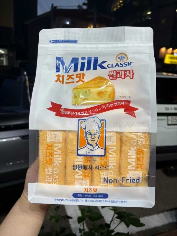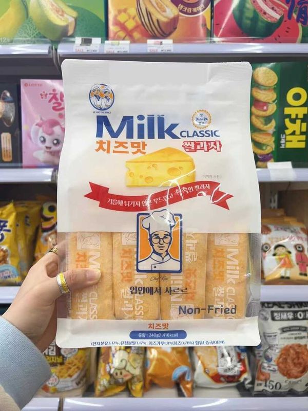 連韓國人都在搶的就是這個牛奶米餅!像旺旺仙貝是有厚度的,入口香濃奶味,咀嚼奶香四溢讓人回味無窮,而且這款米餅是非油炸,嘴饞時來一包也無負擔,如果幸運在架上有看到務必拿上幾包!