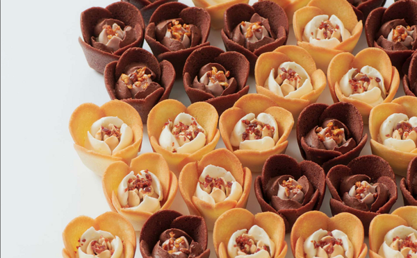 在2種散發著個性香味的奢侈而正宗的味道上,將北海道產的牛奶朱古力奶油疊加在一起,做成醇厚的,擠成可可朗格多沙餅乾。