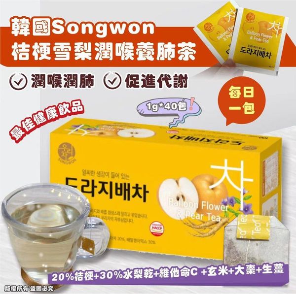 韓國製Songwon 桔梗雪梨潤喉養肺茶 40入