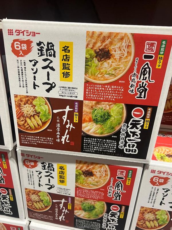 內含口味: 一風堂博多豚骨赤丸新味、天下一品京都雞白湯味、すみれ札幌濃厚味噌味,每種口味各2包,共6包。