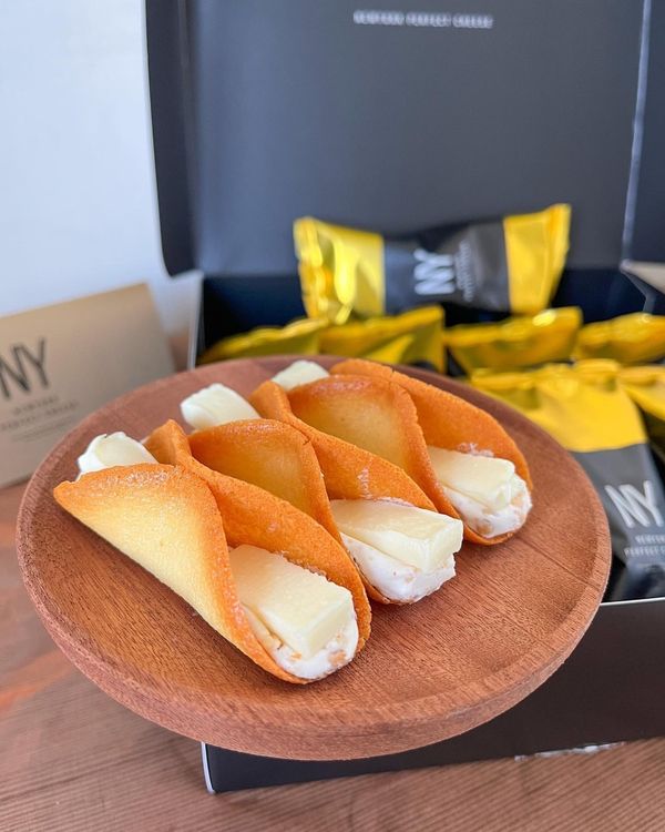 “ New York Perfect Cheese”是一間紐約式芝士甜點店,由三名活躍於世界各地的芝士專業人士監管。 通過檢查從世界各地收集的芝士並重複試生產,完美的人氣芝士甜點正在銷售中。NewYork Perfect Cheese芝士奶油脆餅,造型獨到,中間捏起定型方便拿取。外層是酥薄細緻的貓舌頭餅乾,搭上濃郁芝士、白巧克力、牛奶奶油,口感超特別,日本熱銷必買。