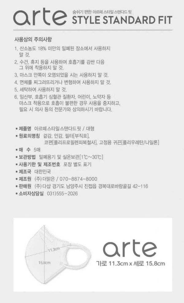 韓國 Arte 2D立體成人口罩 50片 5片包裝 (可混色選擇)