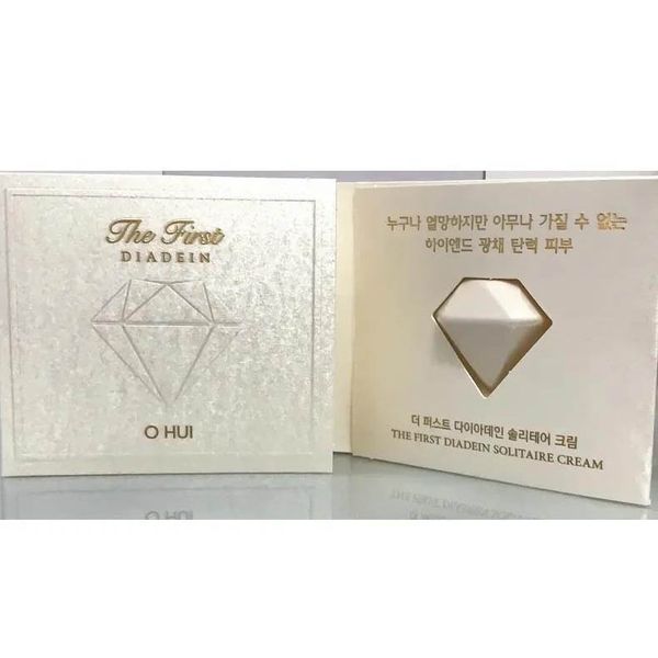 Ohui 極致鑽石乳霜小樣 "The First Diadein Solitaire Cream"深層抗衰成分岩醇,274種有效成分,有助於肌膚活力,打造緊緻肌膚、強化肌膚的功效‼ ️ 此外,含有 0.3 克拉鑽石粉,打造奢華光彩肌膚。特別是Ohui極致系列獨家開發成分Signature 29 Cell比現有極致系列多4倍,可為疲憊肌膚恢復更強大的能量與活力從肌膚表面到深處的彈性都得到呵護,打造富有彈性與光澤的驚人光彩彈性肌膚✨ 法國Court Dasure玫瑰精油,以安普萊利酒技術萃取,傳遞驚人保濕力,帶來抗氧化效果。反式肌膚技術與現有產品相比強化5倍的有效成分的吸收力,為肌膚傳遞活力
