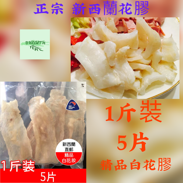 新西蘭鱈鳘魚頂級花膠/ A級 精品白花膠 / 500g / 1 斤裝 / 5片 / 新西蘭直接進口