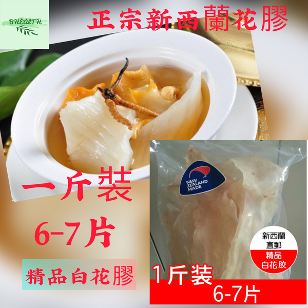 新西蘭鱈鳘魚頂級花膠/XXL級 精品白花膠 / 500g / 1 斤裝 / 6片- 7片 / 新西蘭直接進口
