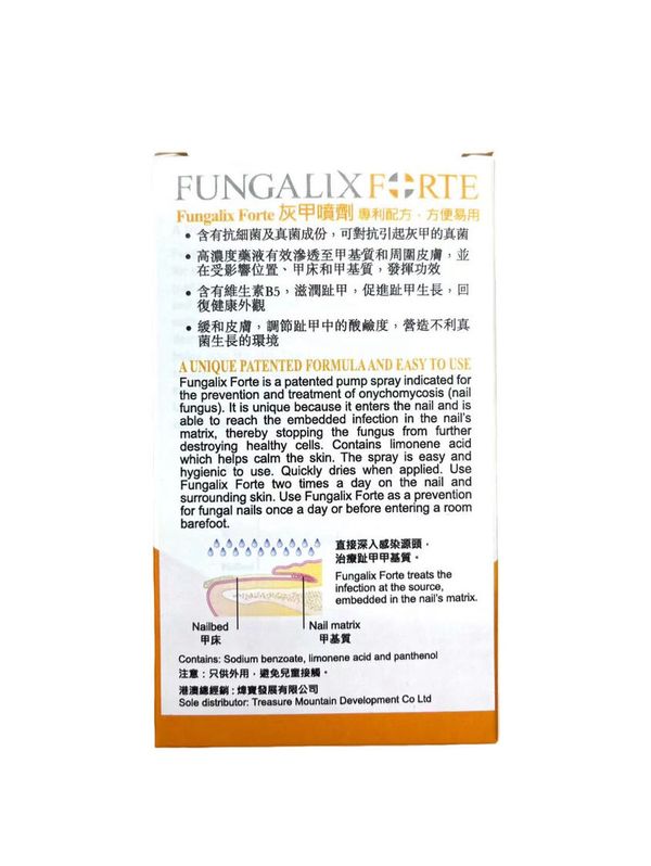 Fungalix Forte灰甲噴劑30ml 專利配方<可對抗引起灰甲的真菌,凋調節甲中酸鹼度,營造不利真菌生長的環境,保護甲膚,勿需挫甲>有效期:04/2026