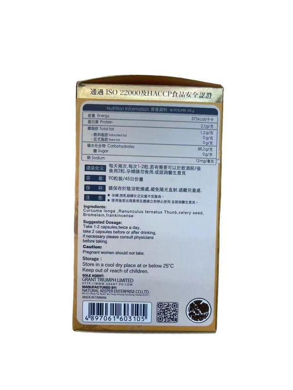 一粒膠囊(500mg)含375mg的濃縮強效薑黃素,能快速被身體吸收,且持續發揮解酒功效,維護肝臟健康。