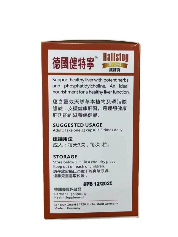 德國星級版護肝寶120粒 <具有修護肝細胞,是維護健康肝功能的重要物質>有效期: 12/2025