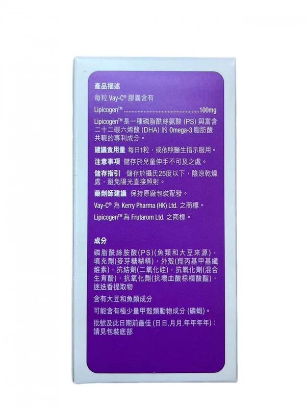 維憶健 Vay-C Lipicogen 100mg 30粒裝【香港行貨】09/206 到期日