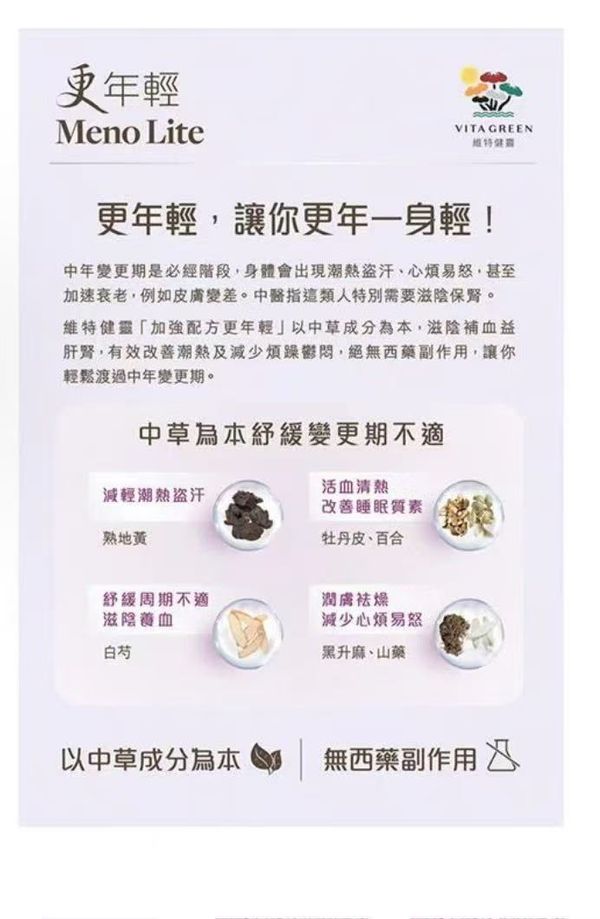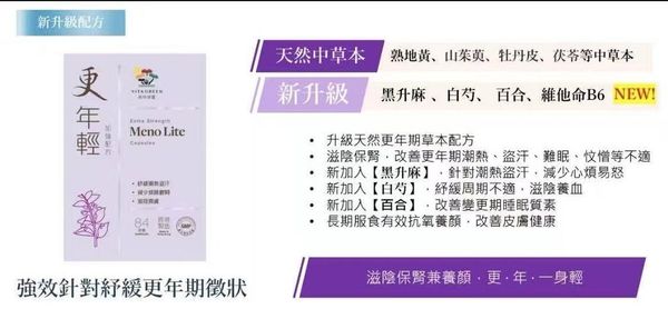- 中西草本,全面針對潮熱、盜汗、忟憎、難眠