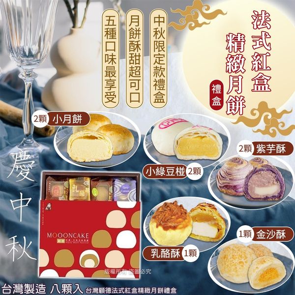 現貨到台灣中秋送禮顧德法式紅盒精緻月餅禮盒5種口味-8顆(單盒) (期間限定)