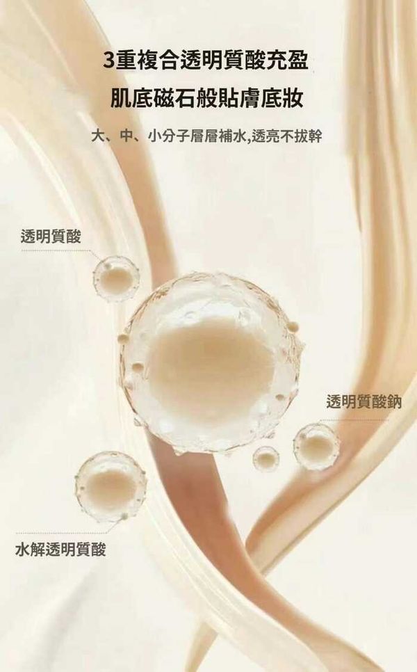 ——深層補水,透亮不拔乾,充盈肌底感受,磁石般貼膚底妝