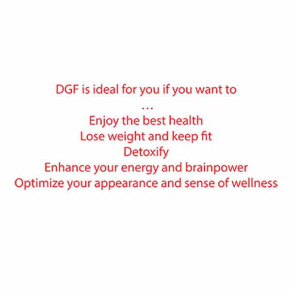 Phyto-nutrients are essential to health for a lifetime. DGF provides you with the easiest way to obtain the recommended phyto-nutrition and antioxidant power to the extent of more than 10 servings of fruits and vegetables every day.
