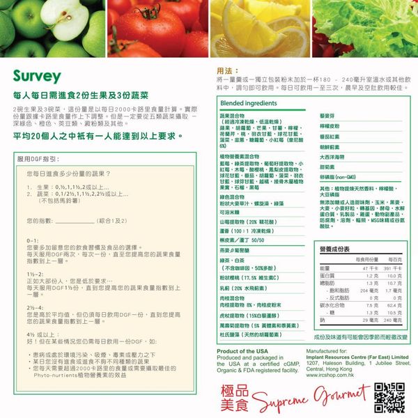 植物營養素對維持終身健康是極為重要,DGF蔬果精華配方是一簡單及方便的方法,為您每日提供多於十份蔬果的抗氧化能量。