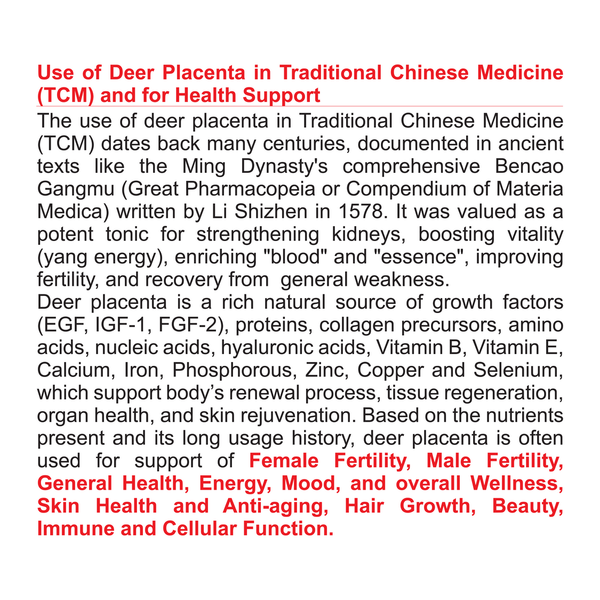 Use of Deer Placenta in Traditional Chinese Medicine (TCM) and for Health Support