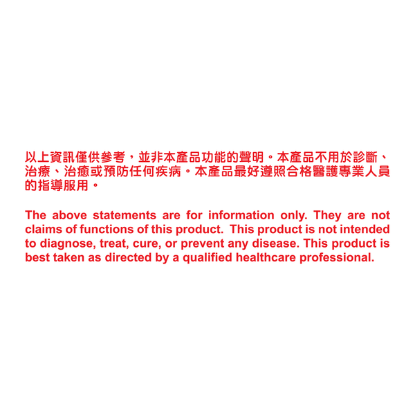 以上資訊僅供參考,並非本產品功能的聲明。本產品不用於診斷、治療、治癒或預防任何疾病。本產品最好遵照合格醫護專業人員的指導服用。
