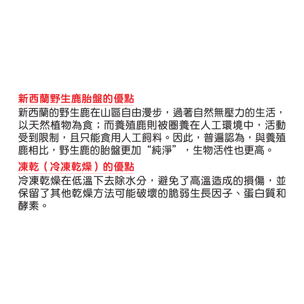 成份:100%凍乾新西蘭野生鹿胎盤粉