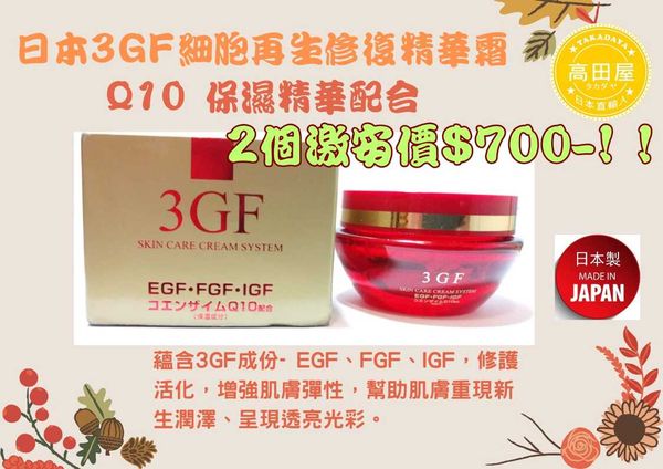 3GF细胞再生修護精華霜(3GF CREAM) -2個限時激安價!!(日本原裝正貨平行進口)-包順豊本地運費!!