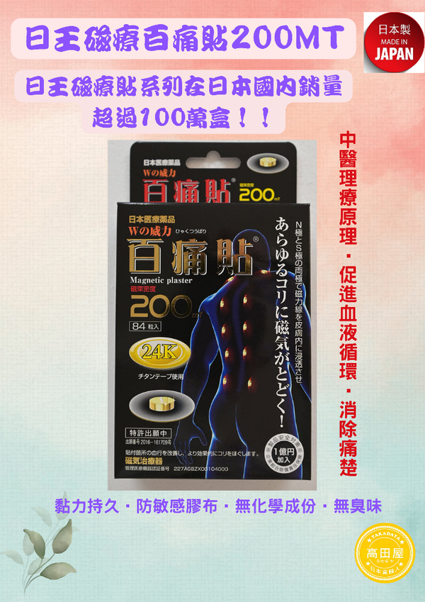 【日王百痛貼】日本磁石200mT百痛貼 (84粒)-包順豊本地運費!!