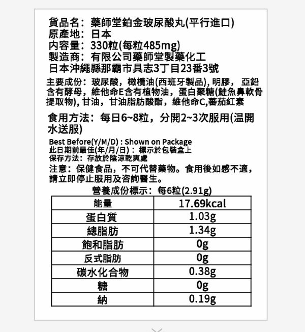 藥師堂PLATINUM玻尿酸口服丸現貨(日本國內限定貨品) (日本原裝平行進口)-包順豊本地運費!!