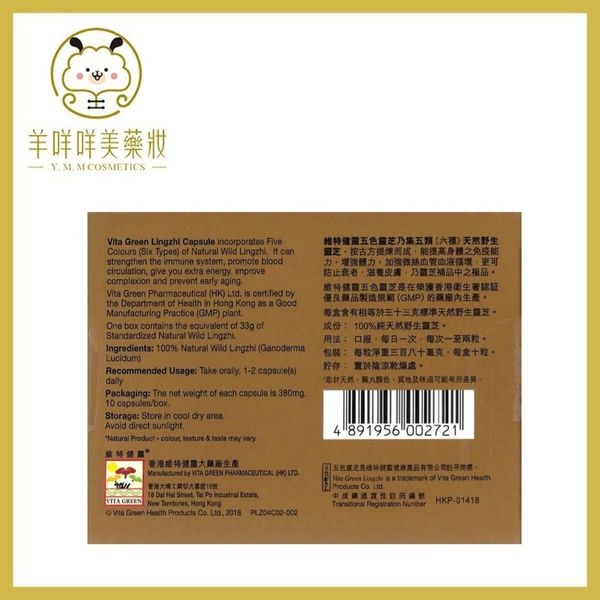 維特健靈 - Vita Green維特健靈五色靈芝 10粒