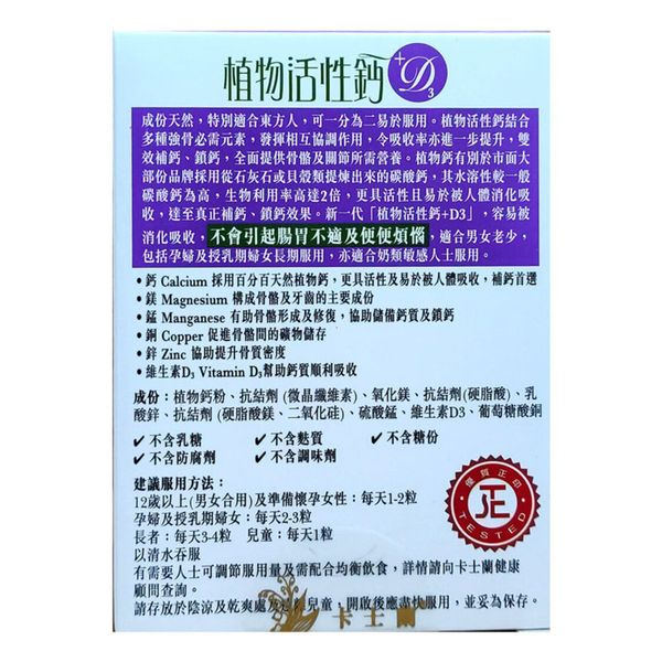 卡士蘭 植物活性鈣+D3 90粒