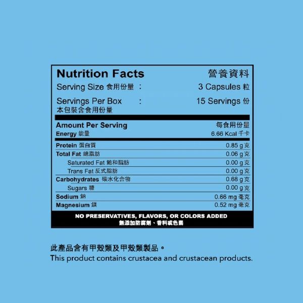 本產品含有甲殼類動物和甲殼類動物產品