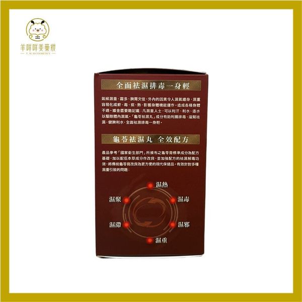 《樂道苓袪濕丸》參考「國家衛生部門」所頒布之龜苓膏標準成份為配方基礎,加以配伍本草成份作改良,並加強配方的袪濕解毒功效,將傳統龜苓膏改良為更方便的現代保健品,並針對疲勞無神,胃滯肚谷、皮膚困擾、水肥脹胖、口臭牙痛和筋骨濕痛等都市問題。