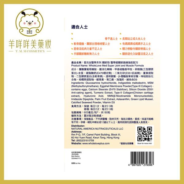 WholeLove Med愛完全醫學系列關節勁醫學級關節鎮痛強肌配方 180粒