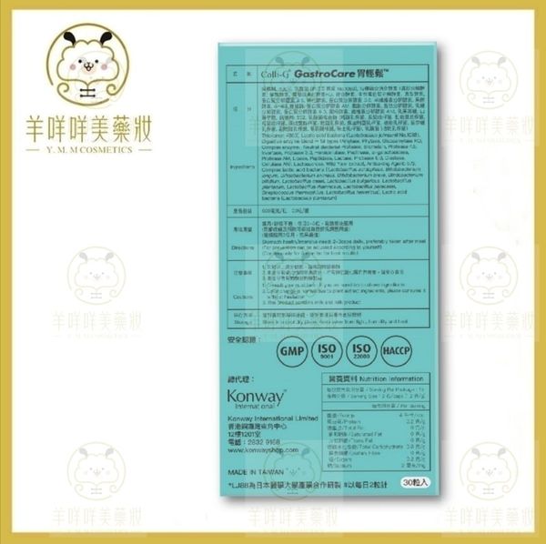 產品優點:含日本益生菌LJ88(10億)、13種益生菌(201億)及19種消化酵素,針對反覆性胃困擾,有助紓緩胃脹腹脹、胃灼熱、消化不良等胃部不適。