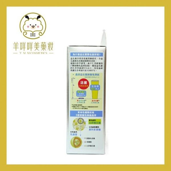 益生菌: 比菲德氏菌, 乳酸菌(嗜酸乳酸菌, 加氏乳酸菌)