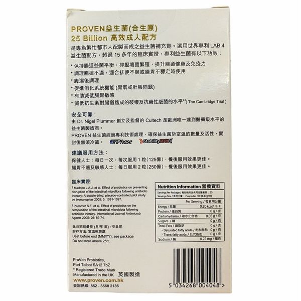 ProVen 益生菌 - 益生菌(合生原)高效成人配方(250億) 30粒