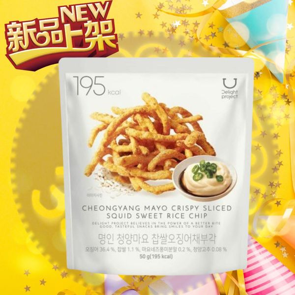 如果你喜歡香辣風味,Delight Project 的 Cheongyang Mayo Crispy Sliced Squid Sweet Rice Chip 是一個非常有趣的選擇!這款零食結合了香辣青陽椒、鮮美的烤魷魚,以及甜糯米片,搭配特製的美乃滋香料,酥脆的口感令人回味。份量 50 g,熱量 195 kcal,適合作為小份精緻的零嘴。🎉