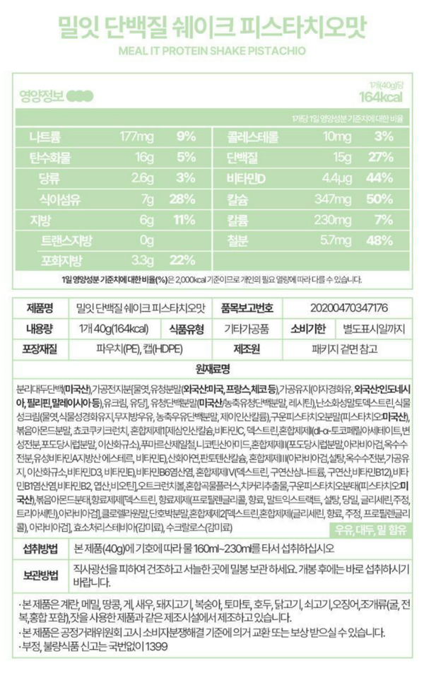 韓國 [平行進口]MEAL IT蛋白質奶昔[開心果口味]