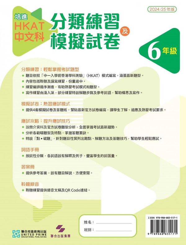 聯合培進 - HKAT中文科分類練習及模擬試卷 小六 #9789888835171