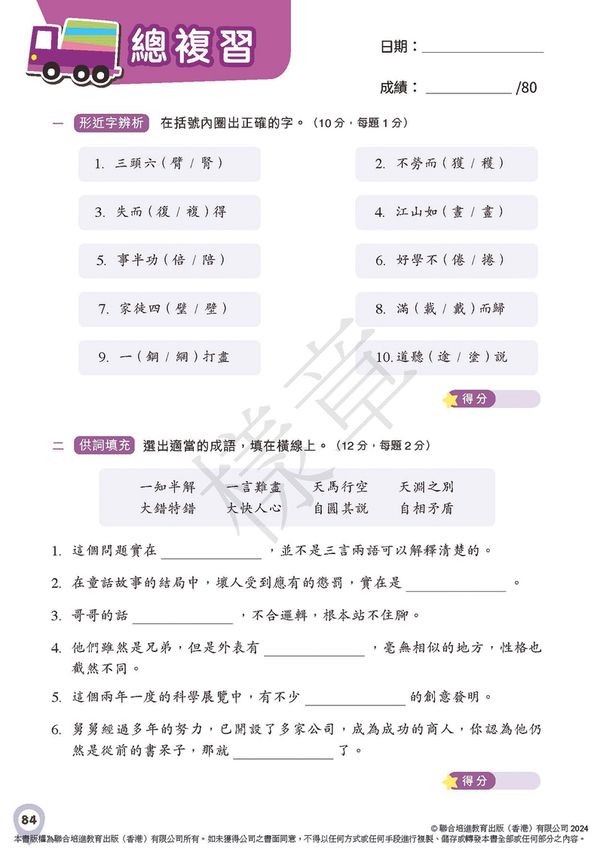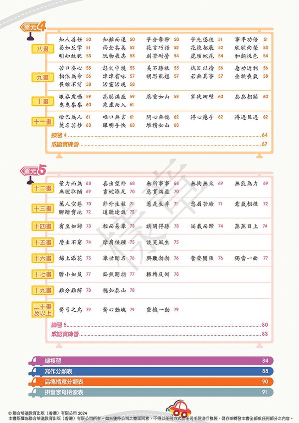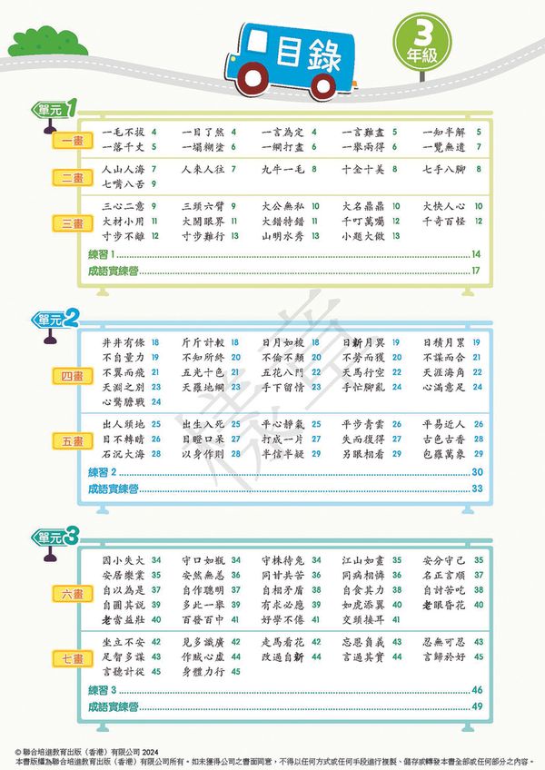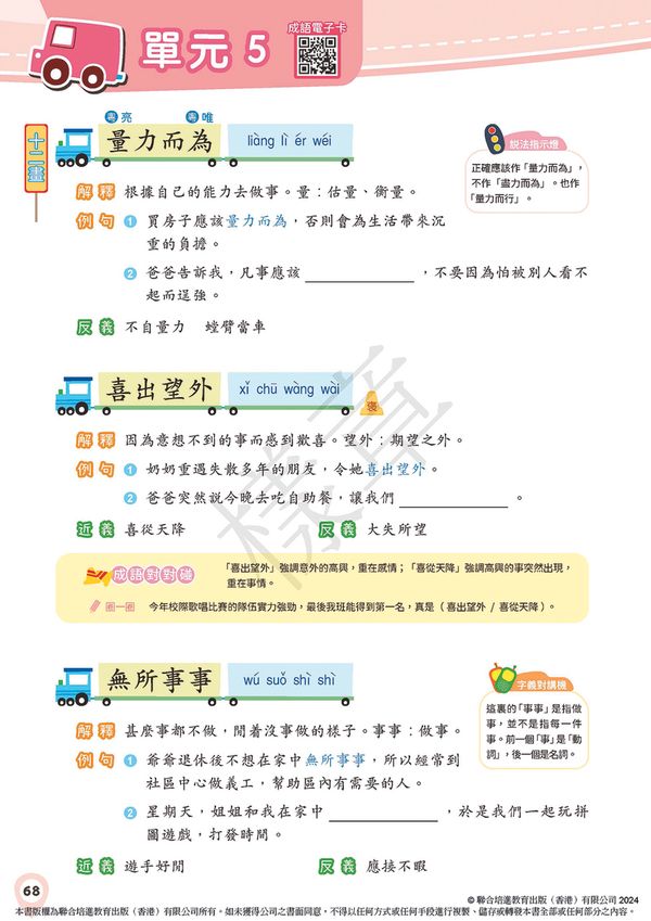 • 設有5個練習及1個總複習,鞏固學生對成語的認識