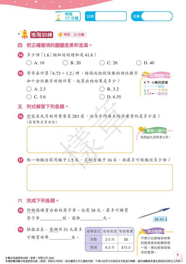 • 附送答案冊及3種網上自學資源