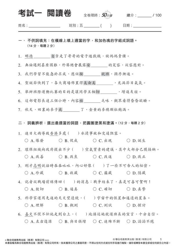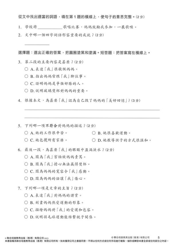 ・題型緊貼校內呈分試形式,讓學生熟習考試模式。