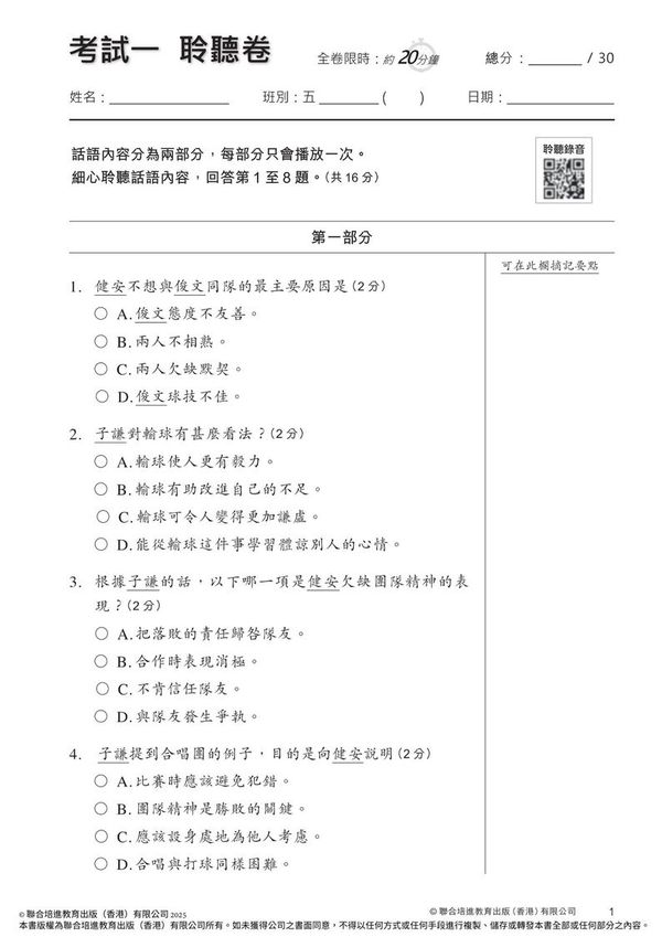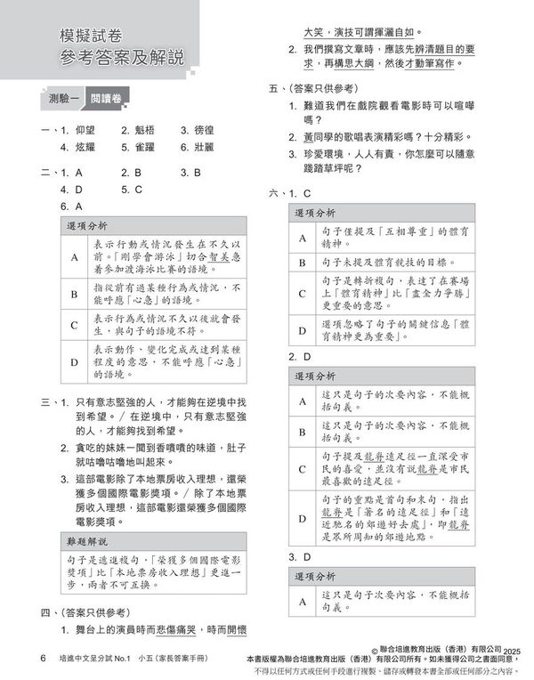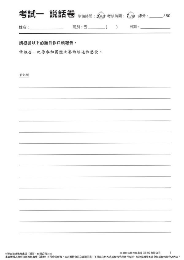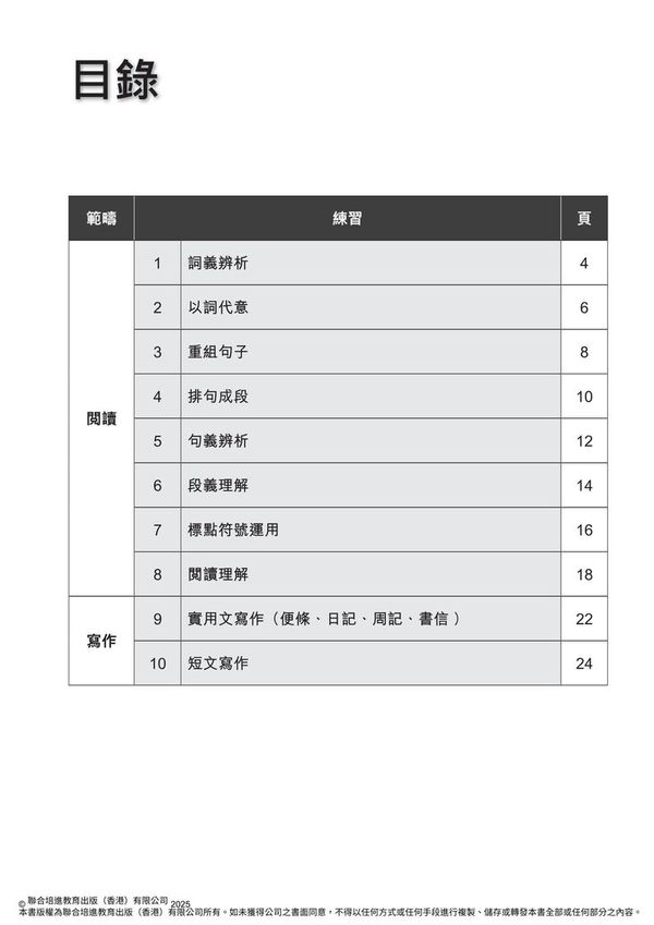 ・每冊設24份模擬試卷,涵蓋閲讀、寫作、聆聽、説話四大範疇: