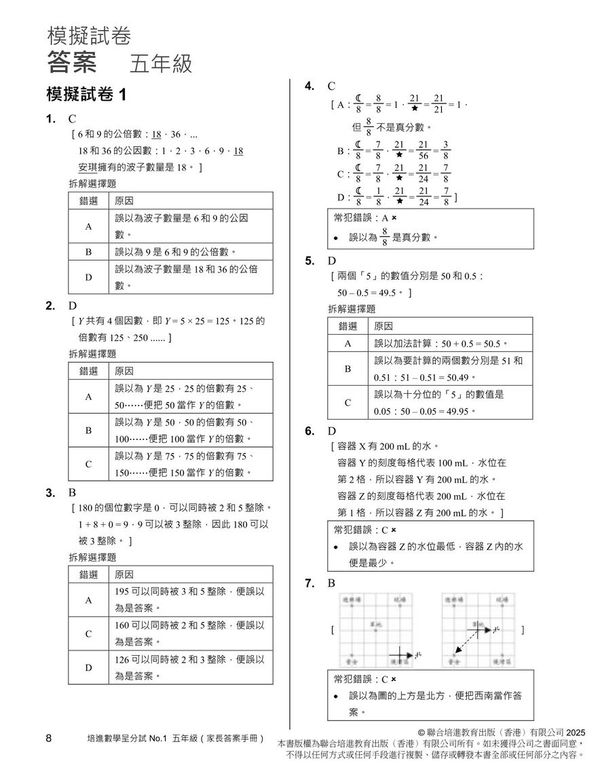 •附家長答案手冊,設拆解選擇題、解題步驟、常犯錯誤3種答案詳解,方便家長參考或學生自學。