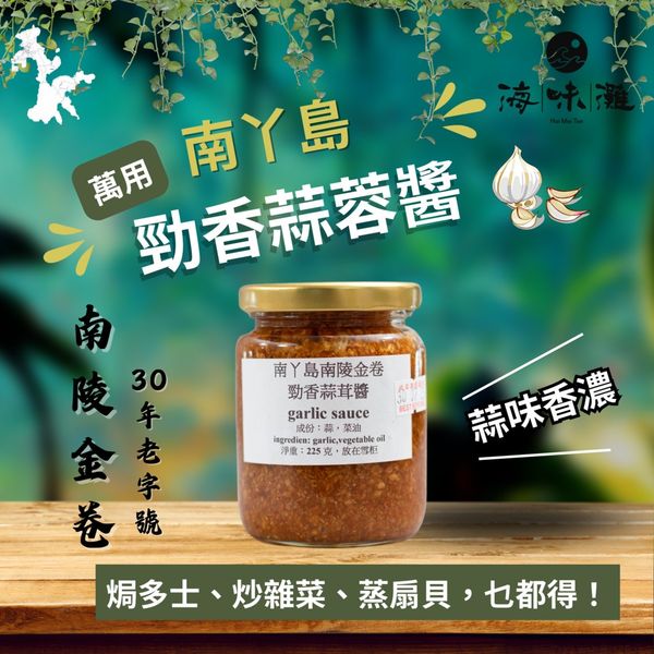 香的不得了!打開瓶蓋就聞到很香蒜茸味,嚐起來味道香濃,是家中必備的萬用醬料,可用來煮意粉、焗多士、炒雜菜、蒸扇貝、開邊蝦、焗茄子,或做火鍋醬料等,用途多多。南丫島南陵金卷的手工醬料,無添加防腐劑、色素、增味劑,香味全來自真材實料和製作手藝。