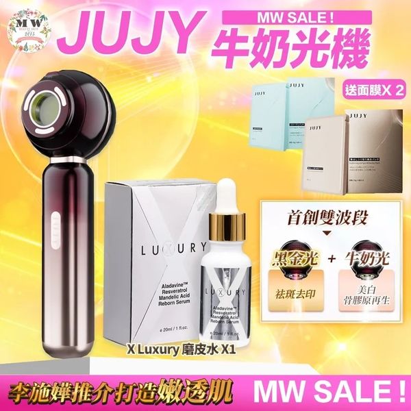 JUJY 牛奶光嫩透肌提亮淡斑逆齡美容儀+X Luxury 超級磨皮水美白精華 | 送 2盒面膜 香港行貨