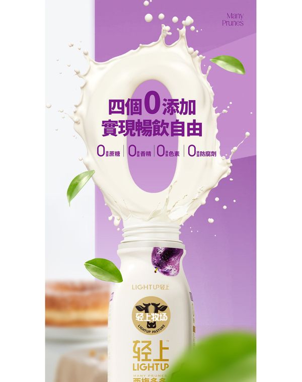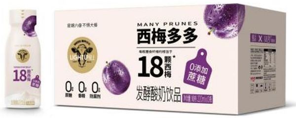 配料:水、酸乳(全脂乳粉、濃縮全脂生生乳、德氏乳桿菌保加利亞亞種、嗜熱鏈球菌)、西梅濃縮汁、 山梨糖醇、聚葡萄糖、羥丙基二澱粉磷酸 酯、羧甲基纖維素鈉、果膠、黃原膠、三聚磷酸鈉、結冷膠、檸檬酸鈉、檸檬酸、乳酸、蔗糖素。