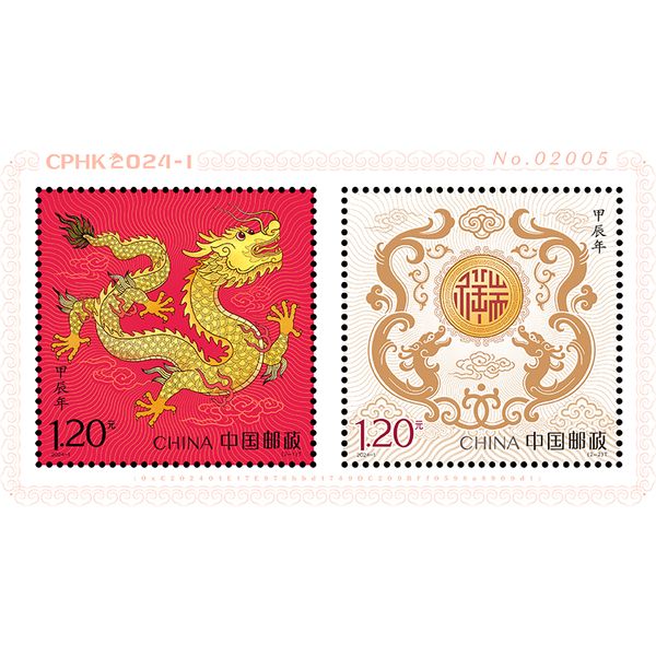 中國郵政發行《甲辰年》數字郵票一套兩枚: