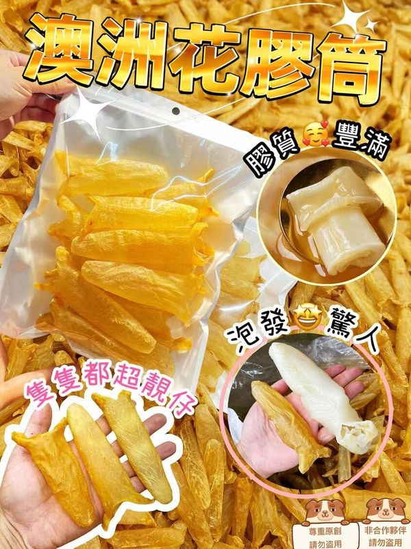呢批澳洲花膠筒,系今年最抵買,性價比最強,1️⃣包約有12-18隻,可分2-3次,中size因花膠質地好,泡發出來决唔絕對唔細,鋸個小型扒都唔過分😂😂😂😂。